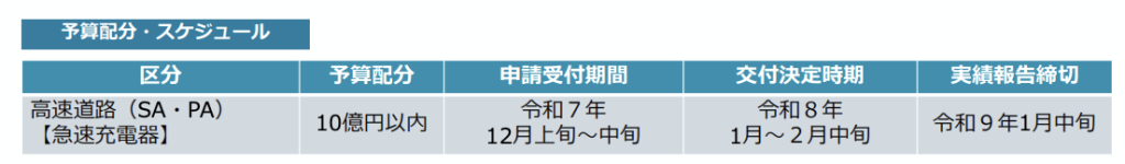 高速道路(SA・PA)【急速充電器】の区分で令和7年12月8日(月)から申請受付を開始します。